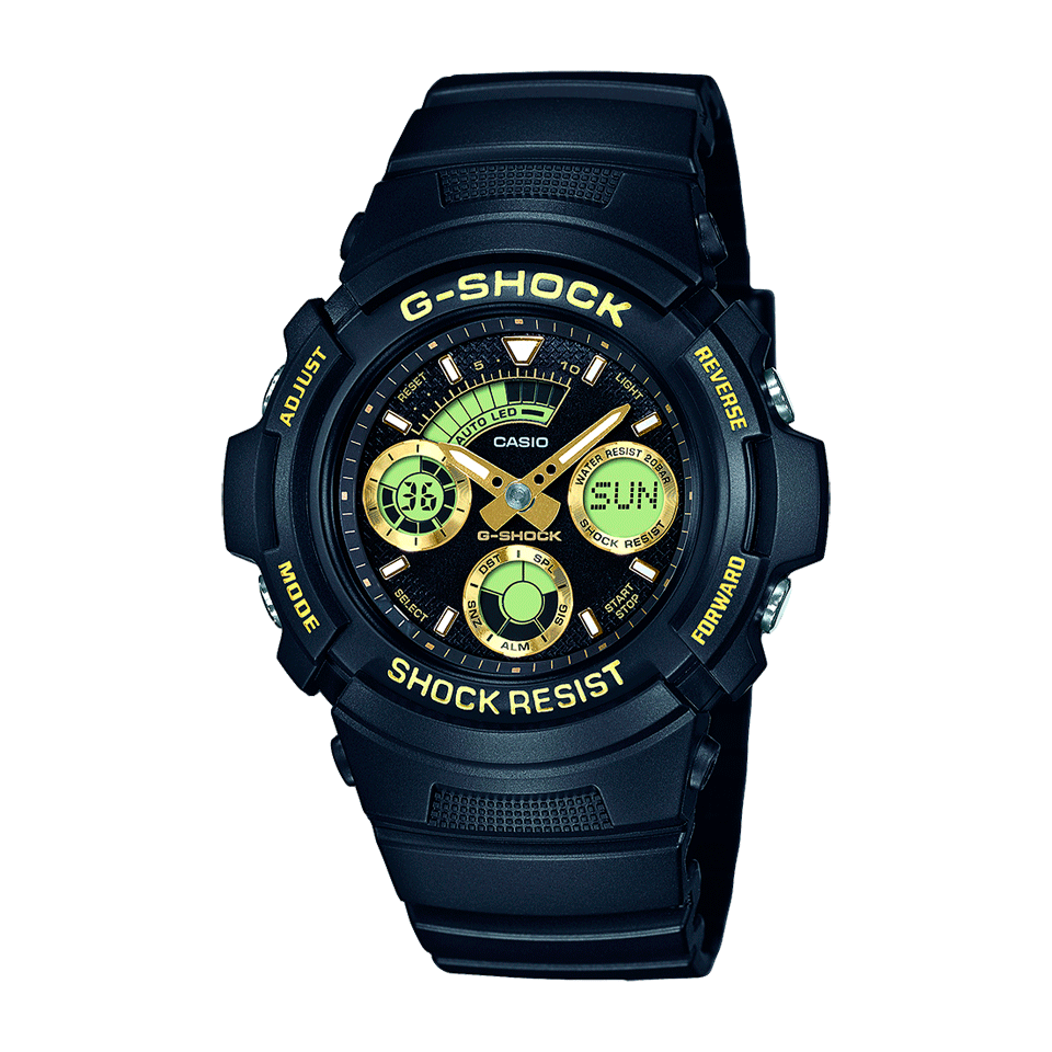 Ovaj model kombinira najbolje od digitalnog i analognog u ovom čvrstom G-SHOCK dizajnu. Gumbi su zaštičeni od udaraca, a dostupne su varijacije za izbor u dvije boje: žuta i narančasta. Bazna boja sata je tamno plava.