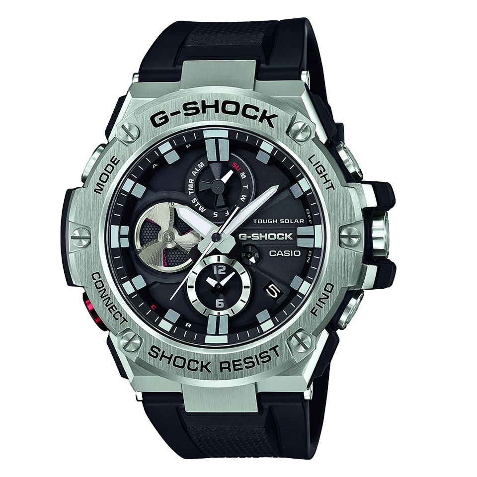 G-SHOCK nudi prve G-STEEL modele koji sadrže performanse kronogfama u analognom formatu. Kod 9-satne kazaljke sat ima višenamjenski rotirajući disk koji je izrezan kako bi nalikovao debelim oštricama mlaznog motora. Ovi satovi opremljeni su Bluetooth-om koji im omogućuje povezivanje s pametnim telefonom pritiskom gumba i dobivanje informacija o vremenu s internetskog poslužitelja vremena. Rezultat je točno mjerenje vremena bez obzira gdje se nalazite u svijetu. Ostale funkcije uključuju Tough Solar u kombinaciji s CASIO originalnom tehnologijom za uštedu energije za stabilnu opskrbu energijom, osvjetljenjem LED svjetla visoke svjetline i dvostrukim prikazom svjetskog vremena. Sat dolazi u dvije varijante - s remenom od kaučuka i metalnim remenom.