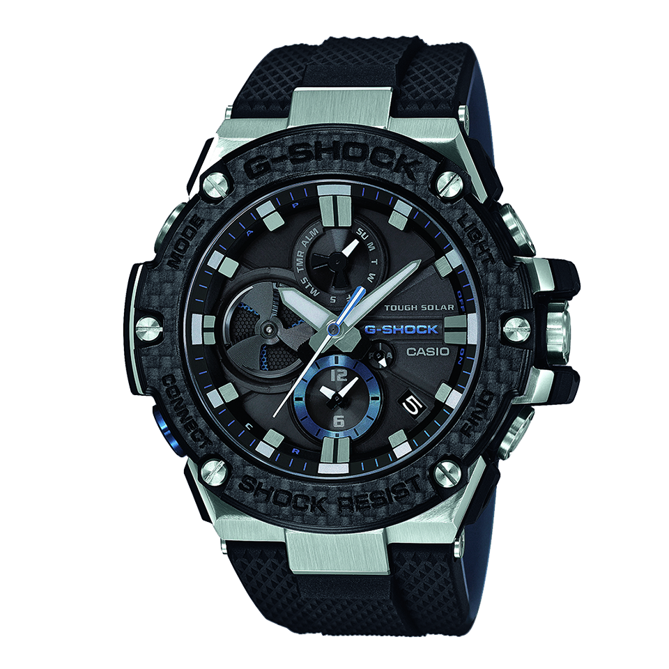 G-SHOCK nudi prve G-STEEL modele koji sadrže performanse kronogfama u analognom formatu. Kod 9-satne kazaljke sat ima višenamjenski rotirajući disk koji je izrezan kako bi nalikovao debelim oštricama mlaznog motora. Ovi satovi opremljeni su Bluetooth-om koji im omogućuje povezivanje s pametnim telefonom pritiskom gumba i dobivanje informacija o vremenu s internetskog poslužitelja vremena. Rezultat je točno mjerenje vremena bez obzira gdje se nalazite u svijetu. Ostale funkcije uključuju Tough Solar u kombinaciji s CASIO originalnom tehnologijom za uštedu energije za stabilnu opskrbu energijom, osvjetljenjem LED svjetla visoke svjetline i dvostrukim prikazom svjetskog vremena.